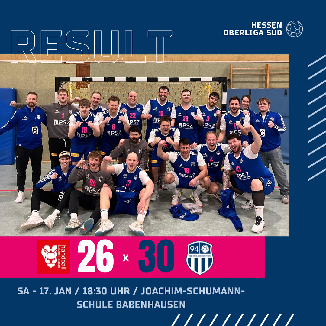 Nach dem Seitenwechsel änderte sich am Bild wenig. Die Gäste kontrollierten das Tempo, verteidigten kompakt und hielten Babenhausen konstant auf Abstand: 14:18, 16:20, 18:21 und 20:26 waren die nächsten Zwischenstände. In der Schlussphase setzten die 94er mit dem 25:30 den entscheidenden Punch, die Hausherren verkürzten noch einmal – der 26:30-Endstand besiegelte die reife Auswärtsleistung.
