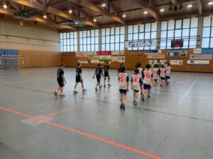 Das Hinspiel bei uns in Kleinostheim konnten wir für uns entscheiden. Trotz der Ausfälle wollten wir auch aus diesem Spiel zwei Punkte mit nach Hause nehmen. So starten wir mit unseren Aushilfsspieler in der Abwehr mit der Vorgabe, die Bälle schnell wieder nach vorne zu bringen. Im Angriff positionierten wir drei Stammspieler mit der Vorgabe, viele Tore zu machen. Das Ganze wurde auch prompt umgesetzt, so dass es nach acht Minuten schon 6:1 für uns stand, es wurde auch gleich gewechselt um das Vorhaben, „alle sollen in der ersten Halbzeit treffen“, umzusetzen. So war es auch. Nach 20 Minuten stand es 17:3 und alle, bis auf Laurin im Tor hatten, mindestens einmal getroffen.