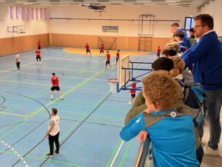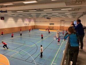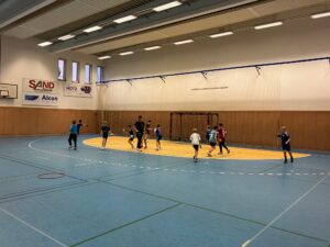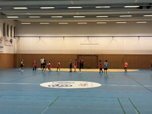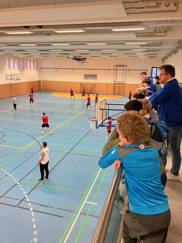 Gestartet wurde mit dem Zuschauen beim Abschlusstraining der Bundesliga-Mannschaft – ein spannender Einblick in das Training der Profis. Gleichzeitig fand in der benachbarten Halle das Trainingslager der U17-Nationalmannschaft statt. Auch dort konnten unsere Nachwuchsspieler kurz hineinschnuppern und sich ansehen, welches Niveau man mit Engagement und Fleiß in nur fünf bis sechs Jahren erreichen kann. Das Team wird von Eric Wudtke, dem Co-Trainer der Deutschen A-Nationalmannschaft, betreut.
